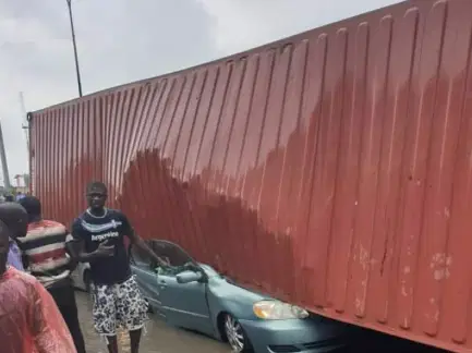 “People now drive on one side of the road because the other side is completely impassable,” he said. “As the trailer tried to cross back to the other lane, the container shifted and fell on three tricycles beside it. Before anyone could raise an alarm, it crushed them.”